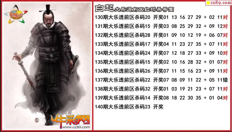 大乐透140期白起前区杀号图